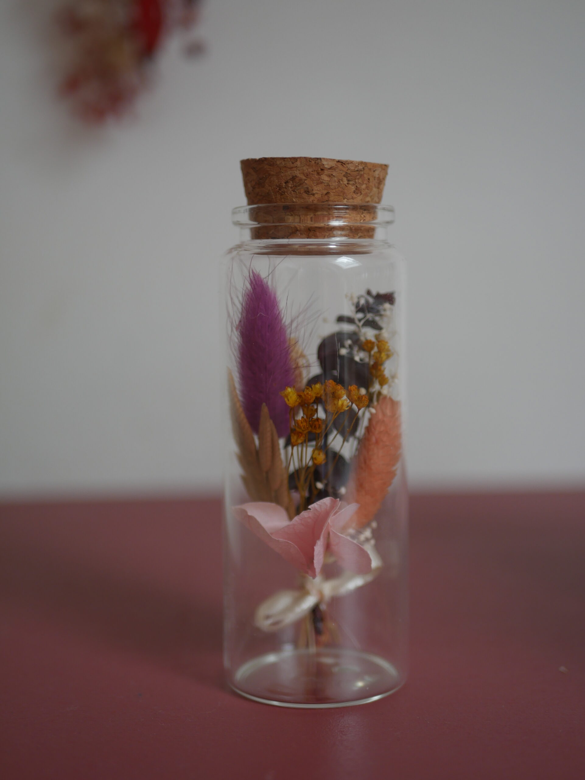 Les fleurs séchées et stabilisées se conservent des années. Cependant les couleurs peuvent varier légèrement au fil du temps. Aussi, cet article est livré avec un guide comportant quelques conseils pour entretenir votre fiole.